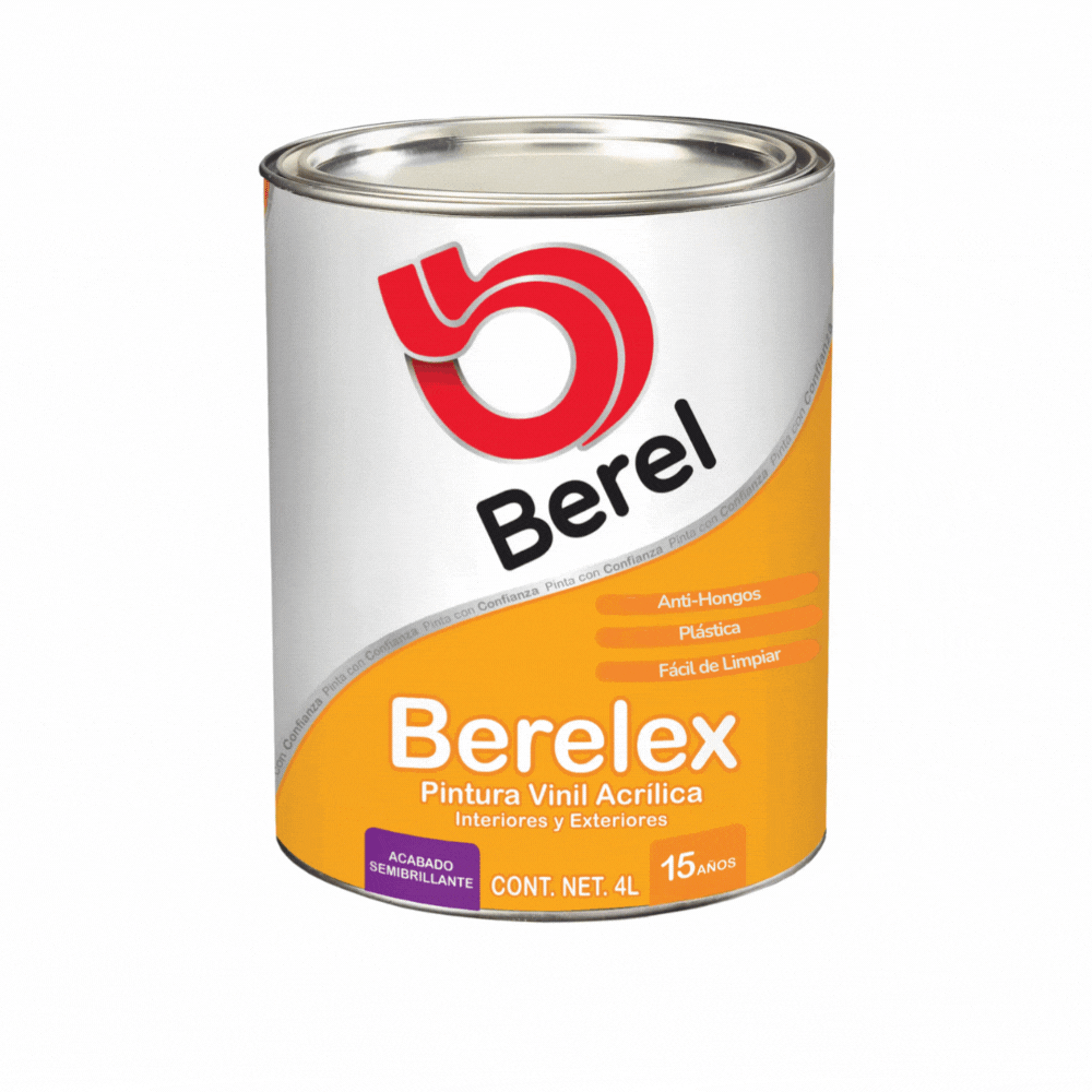 BERELEX ANTI-HONGOS antes llamada SEMIGLOSS es una pintura de acabado semibrillante. especia mente formulada con resina acrílica. Posee un excelente rendimiento y poder cubriente, además de atta retención de bri o, excelente resistencia al lavado, ensuciamiento y crecimiento de hongos. Esta pintura NO contiene plomo.